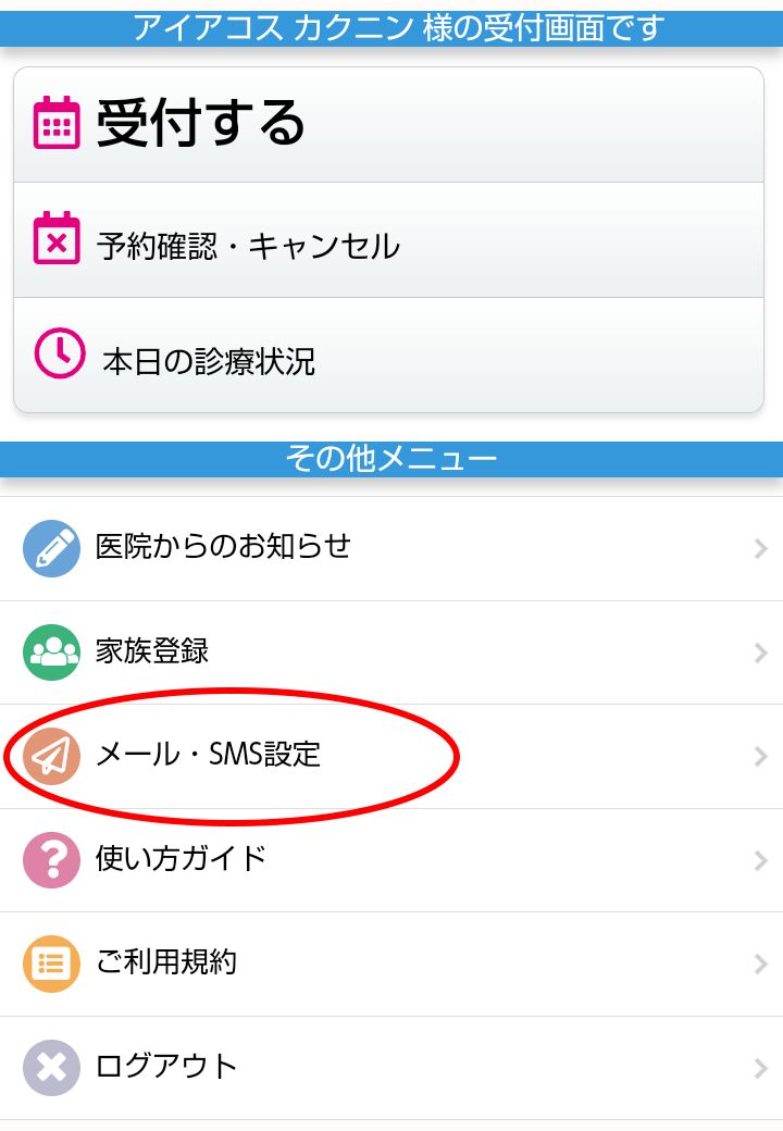2.「メール・SMS設定」をクリックします。