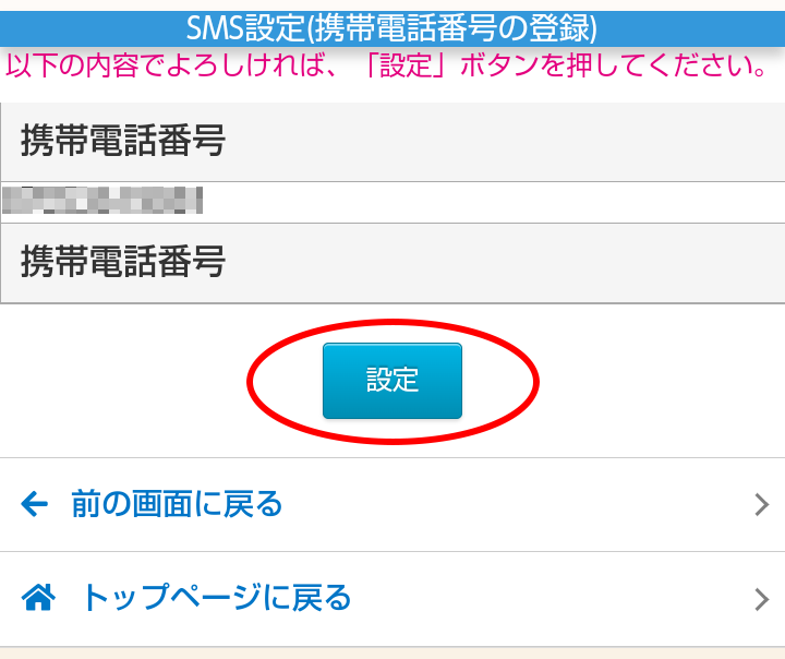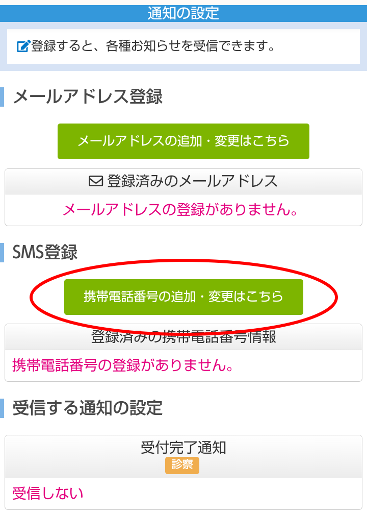 3.「携帯電話番号の追加・変更はこちら」をクリックします。