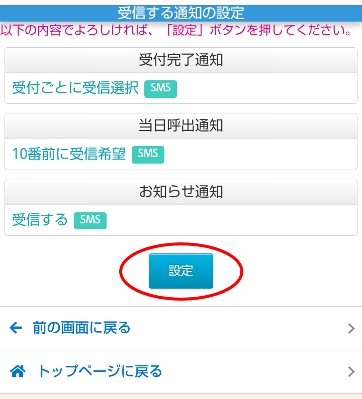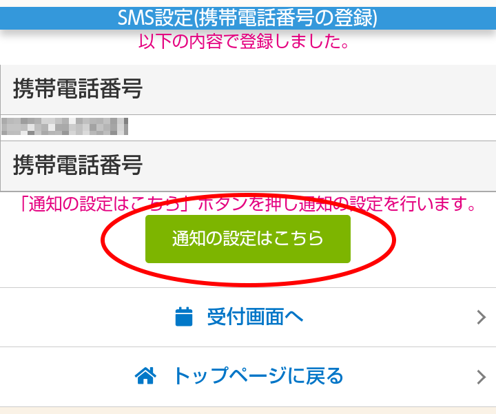 6.「通知の設定はこちら」をクリックします。